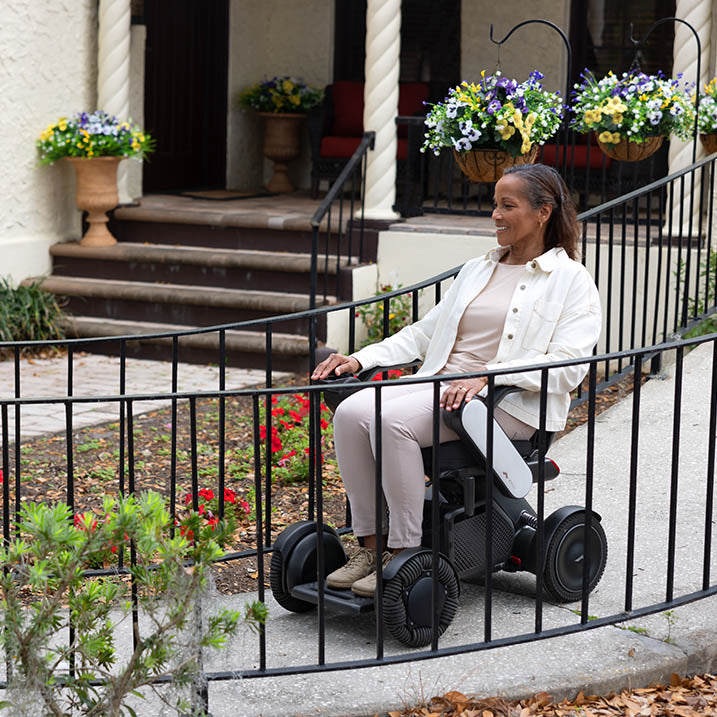 The Model C2 power chair outperforms its predecessor – the Model Ci – in almost every area, from improved 4-wheel suspension that offers more support when driving longer distances, to an increased 12.4-mile range per charge and a higher weight capacity of 300 pounds. Classic features like WHILL's remote driving capabilities, proprietary front omni-wheels, and advanced battery technology have all returned as well.