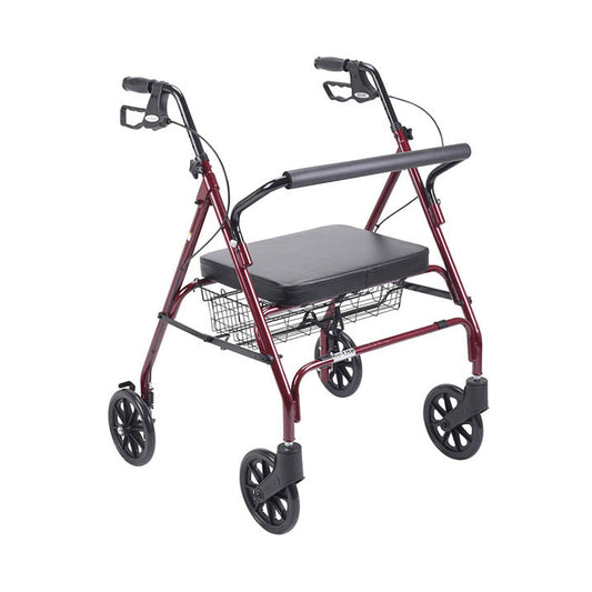 Drive Medical manufactures a number of walkers, knee walkers, and rollators. The primary difference between rollators and walkers are the wheels. Rollators have four wheels, while walkers have either two wheels or no wheels. The front wheels on these devices are swivel casters, making the unit more maneuverable in tight indoor spaces. Rollators typically come standard with a seat, allowing users to sit down and rest during longer excursions. They also have brakes on the handles for added security. Popular models include the Nitro, Go-Lite, and Knee Walker.
