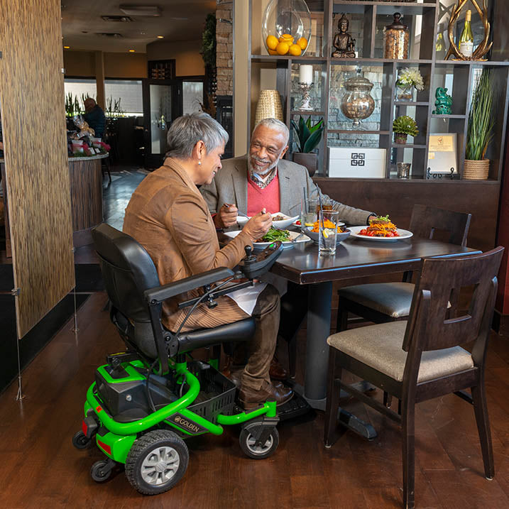 The small wheelbase and tight turning radius of electric wheelchairs makes them a fantastic option for indoor use. However, this doesn’t mean they can’t be used outdoors. Modern power wheelchairs are implementing new technologies like omni-wheels that allow them to be driven in nearly any environment. Looking to purchase an electric wheelchair? Call our Sales Specialists at 1-844-664-7467 or email sales@scootaround.com – our team will be happy to answer any questions you have!