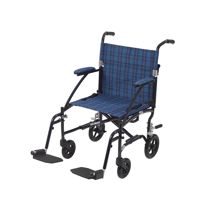 The Fly-Lite is an extremely lightweight aluminum transport chair which weighs less than 17 lbs., making it ideal for users who frequently travel by car, bus, or plane. Available in various colors, the chair is not only durable and easy to clean but also includes a carry pocket on the backrest for convenient storage of personal items.Â