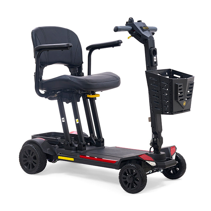 One of the industry’s best folding mobility scooters, the Buzzaround CarryOn HD from Golden Technologies has all the portability of the standard model but with a higher weight capacity and longer driving range. Collapsing to a height of just 14 inches, this scooter is not only easy to transport, but once you reach your destination, it has the power and comfort to support you throughout the day.