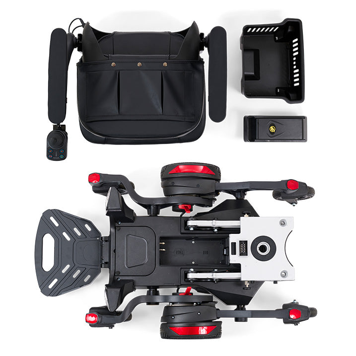 The Buzzaround Carry-On Power Chair from Golden Technologies combines many of the best electric wheelchair features into one remarkable package. The chair is highly portable and folds down to a height of just 10 inches, allowing it to be stored under a bed or in the trunk of a vehicle. This makes it a good option for people who need to frequently transport their mobility device for work, errands, or social engagements.