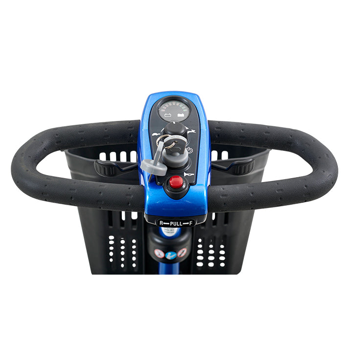 The Lite Rider 4-Wheel Scooter from Golden Technologies is a clever combination of a full-sized scooter and a compact travel scooter. It has many of the features you would find in a larger model – including a comfortable high-back stadium seat – while still being relatively lightweight. This makes it a good choice for users who need both comfort and portability. The Lite Rider can disassemble into 6 pieces for simple transport and storage, with the heaviest piece weighing 52 pounds once disassembled.
